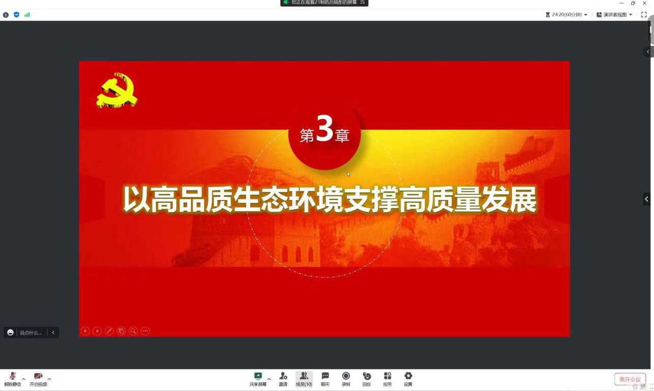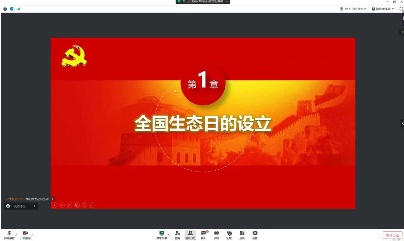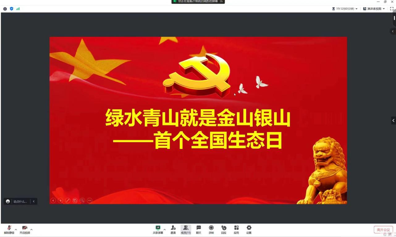 为深刻学习习近平总书记在首个全国生态日之际作出的重要指示,全社会行动起来做绿水青山就是金山银山理念的积极传播者和模范践行者,yl6776永利集团本科生第四党支部于8月25日晚通过线上形式开展了以“绿水青山就是金山银山”为主题的学习会。本次学习会由代理副书记吕晓彤主持。