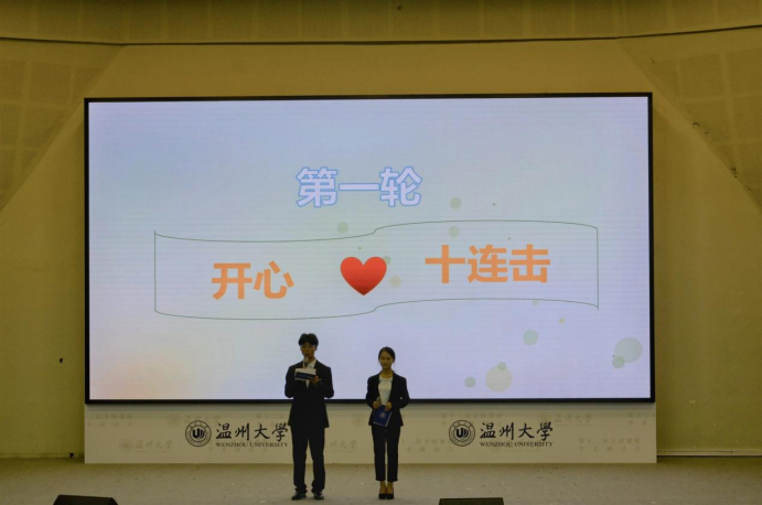 本次竞赛共分为两轮答题。第一轮为“开心十连击”,即随机分好组后轮流上台答题,根据选手分数在每组中选择分数高的相应几名选手晋级第二轮。紧张刺激的比赛正式开始,选手们斗志昂扬、沉着答题,选手根据抽签顺序轮流答题,你追我赶,难分上下。第二轮为“一站到底”,即题的难度也随之攀升,题型也更加丰富,单选、多选。选手们丰富的知识储备、沉着的气质,敏锐的判断,不时赢得台下阵阵掌声与喝彩。场上的比赛激烈胶着,场下助威团此起彼伏,报告厅热闹非凡。