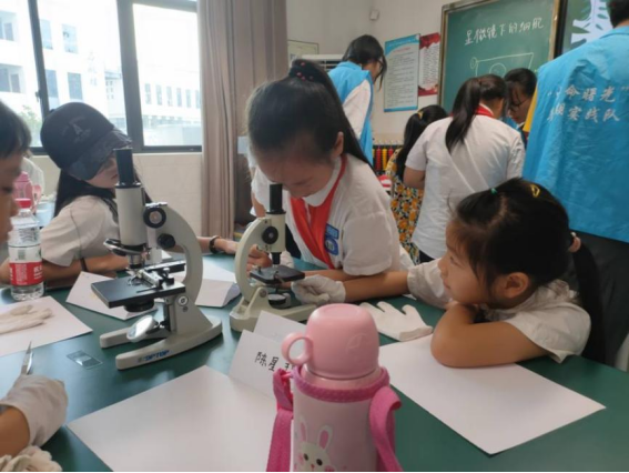 为了让小朋友们能够更清晰地感知细胞的概念,对生物的组成有更多的了解,“生命曙光”实践队于2021年7月15日在永利集团附属茶山实验小学展开了一场别开生面的细胞观察课程。“生命曙光”实验队的成员以及永利集团附属茶山实验小学的小朋友们一起参加了这次活动。