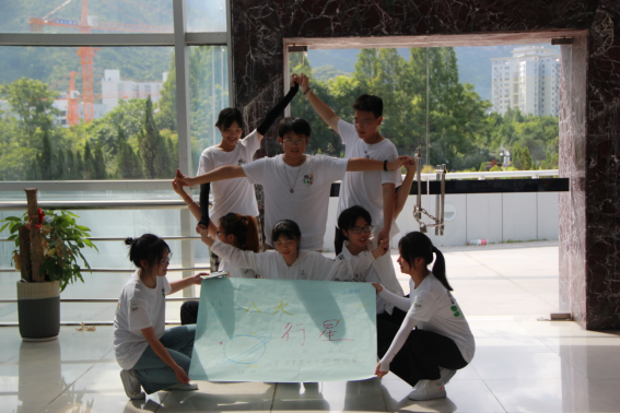 2021年7月15日,“踏梦食安”暑期实践队于大学生活动中心进行飞行部落培训,旨在培养队员们团结协作精神和处理意外能力。