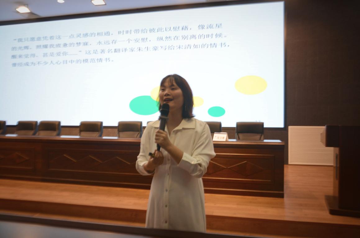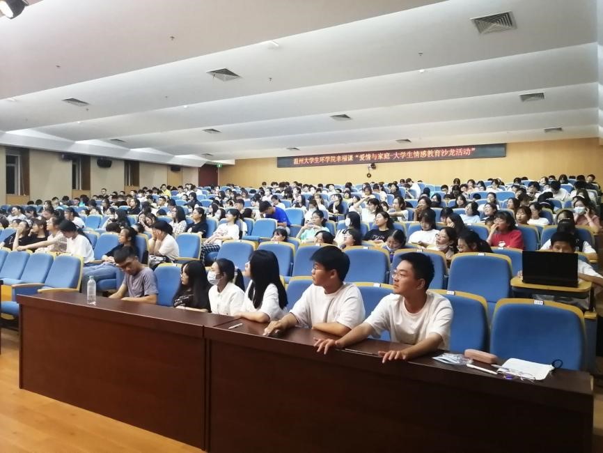 为了加强学生对积极心理学的理解,营造幸福学习、幸福工作的良好氛围,我院开展幸福课“爱情与家庭——大学生情感教育心理沙龙”活动。2021年10月10日的18:30,在南校区岩松堂步青厅内,永利集团心理健康教育中心主任余如英老师正在向我院众学子讲述青年的爱情理论,将同学们青涩懵懂的情感观引向成熟独立的道路。