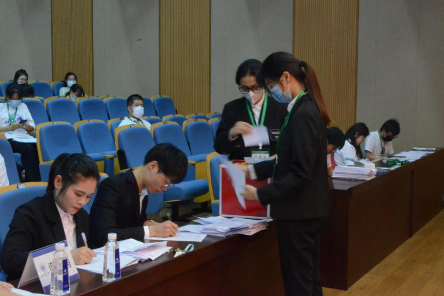 下午三点整,大会全体会议正式拉开帷幕。在嘹亮的国歌声后,大会审议并通过了2020-2021学年学生会工作报告、学生会章程、学生代表选举方法以及2021-2022学年团学主席团名单。经过大会选举,共产生9名学生代表大会委员。