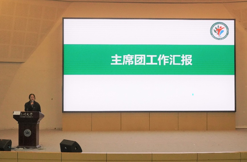 此次会议率先由主席团代表,执行主席竺衍萱做工作汇报。汇报中提出:要让注入的新力量发挥其长,并通过建立干事考核机制实现组织结构的完善与学生工作的最优化、效率化;过去开展的一系列活动以及科研竞赛,加强了各部门的交流与协作能力,提高其凝聚力,更迅速地实现思想步调的一致;着重加强优良学风建设和对学生幸福感的提升。