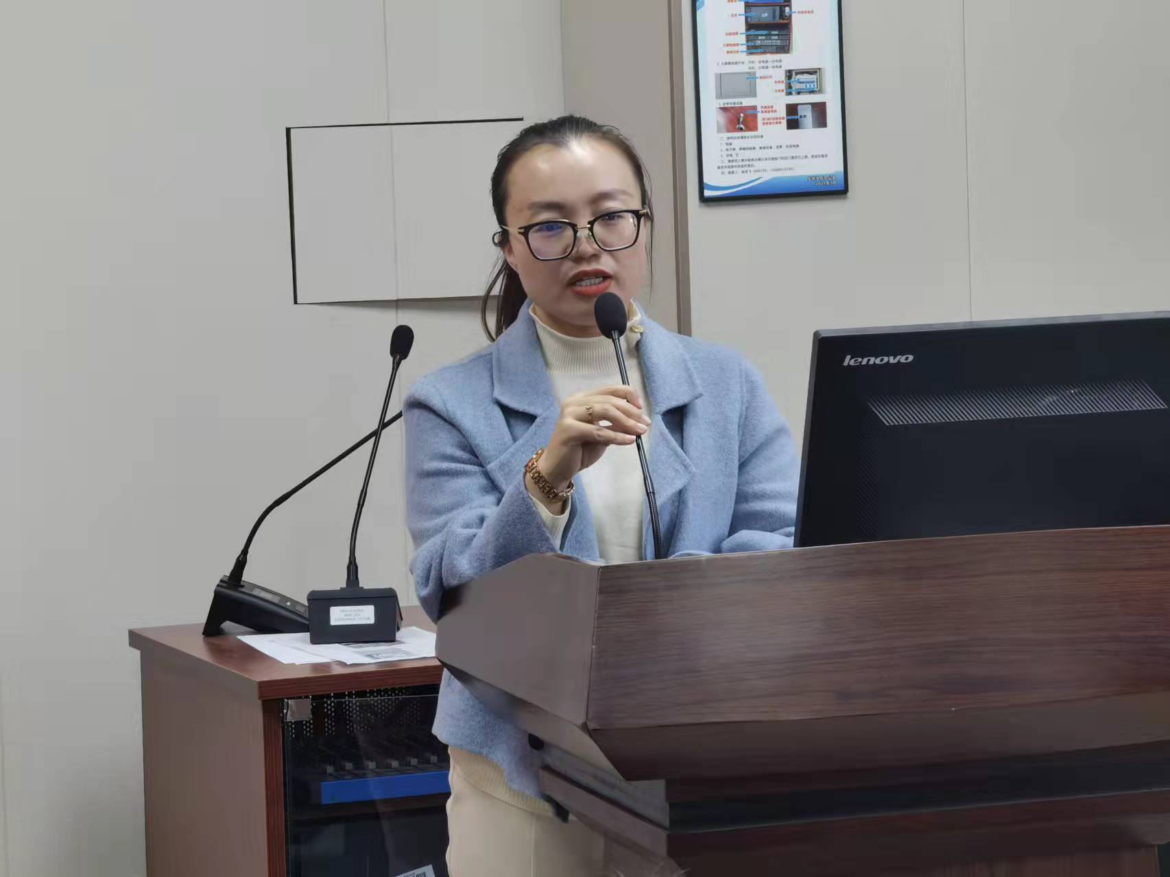 此时,会议进行第六项议程,金海艳老师做了关于“团员青年的成长”的总结。首先,金老师以中午女儿的突然来电为例提出团员应当学会立行,强调了称呼与敬语使用的重要性,做好道德修养的他律与自律;其二,团员青年需要去努力,金老师借以张继平院士的一席话告诉在座的各位团员,人要舍得去努力和吃苦,我们生在了最好的时代但同样也承受了时代最大的压力,天将降大任于斯人也必先苦其心志,我们应当努力去提升自己的“天花板”高度;其三,团员青年要有梦想,金老师以今年考研成功的女孩为例向在座的各位团员讲述了一个关于梦想的故事,时光不负追梦人,我们应当为梦想奋斗!最后,金老师讲述了社会竞争的残酷,提出了前有周总理为中华之崛起而读书,而我们应当为遇见更好的自己而读书,金老师从教育出发,谆谆教导,让在座团员产生了更多关于未来、关于人生的思考。