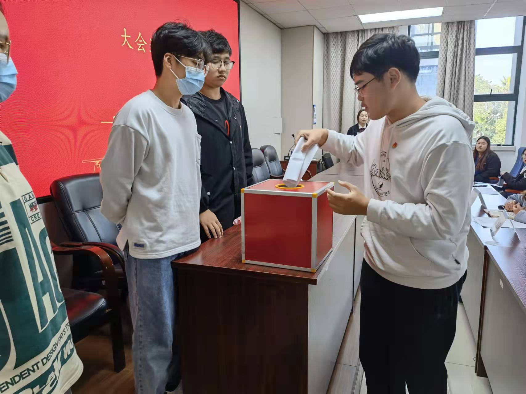 本次团代会共分为奏唱团歌、宣读审议团代会代表选举方法(草案)、宣布共青团代表候选人名单、宣读审议大会监票人、计票人名单、大会选举、学院团委书记讲话六个环节。激昂的团歌拉开了此次团代会的帷幕。歌声落下,第二项议程随即开始。团委副书记邹婷宣读《共青团永利集团第四次代表大会yl6776永利集团代表选举方法(草案)》,并阐述作为代表的七点条件、代表产生办法、应选代表人数、团员代表投票方式等诸多内容。随后,与会代表举手表决选举草案,草案通过,第三项议程开始。执行主席方静宣布团员代表候选人名单,会议迎来最激动人心的选举环节。在与会代表审议通过监票人、计票人名单后,本次大会选举正式开始。场中一片肃穆,与会代表仔细阅读选票说明,认真写下心中的候选人姓名,在投票箱里放下自己庄重的一票。投票过后,随即进入紧张计票环节。
