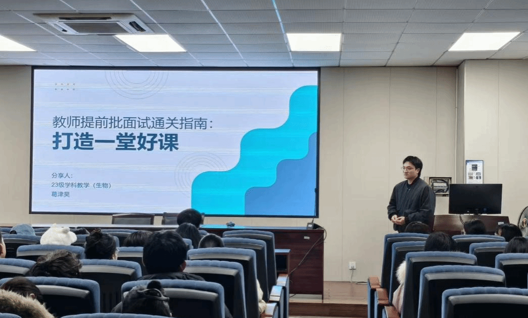 为充分发挥优秀学子的朋辈引领作用,助力师范专业学生备战教师招聘,生环学院于2025年12月24日晚18:30在10B202会议室举办教师提前批备考经验分享会。22级生科师范本科生赵寄望、郑晗、郑烨、蔡惠淇、雷佳慧以及23级学科教学(生物)硕士研究生葛津昊等六位已成功通过教师提前批招聘的学长学姐受邀到场,为在场同学带来了一场干货满满的经验分享。