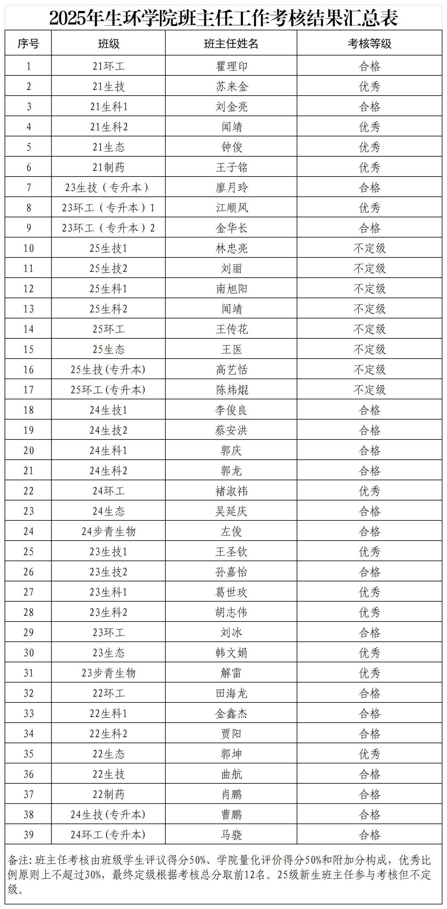 根据《关于开展2025年度辅导员、班主任工作考核的通知》要求,经学院考核,现将我院2025年度班主任工作考核结果予以公示。