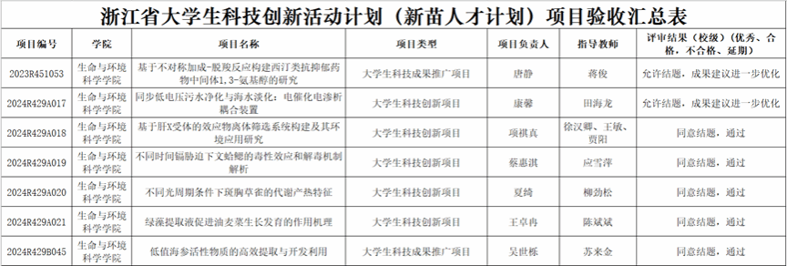 根据《关于开展浙江省大学生科技创新活动计划(新苗人才计划)2024年度项目结题验收的通知》,经过团队汇报、学院审核、专家评审,2024年新苗人才计划的评审结果排序如下。公示时间从即日起至1月9日,如有疑问请联系:学工办杨老师(办公室:10B222电话:0577-86689082)。
