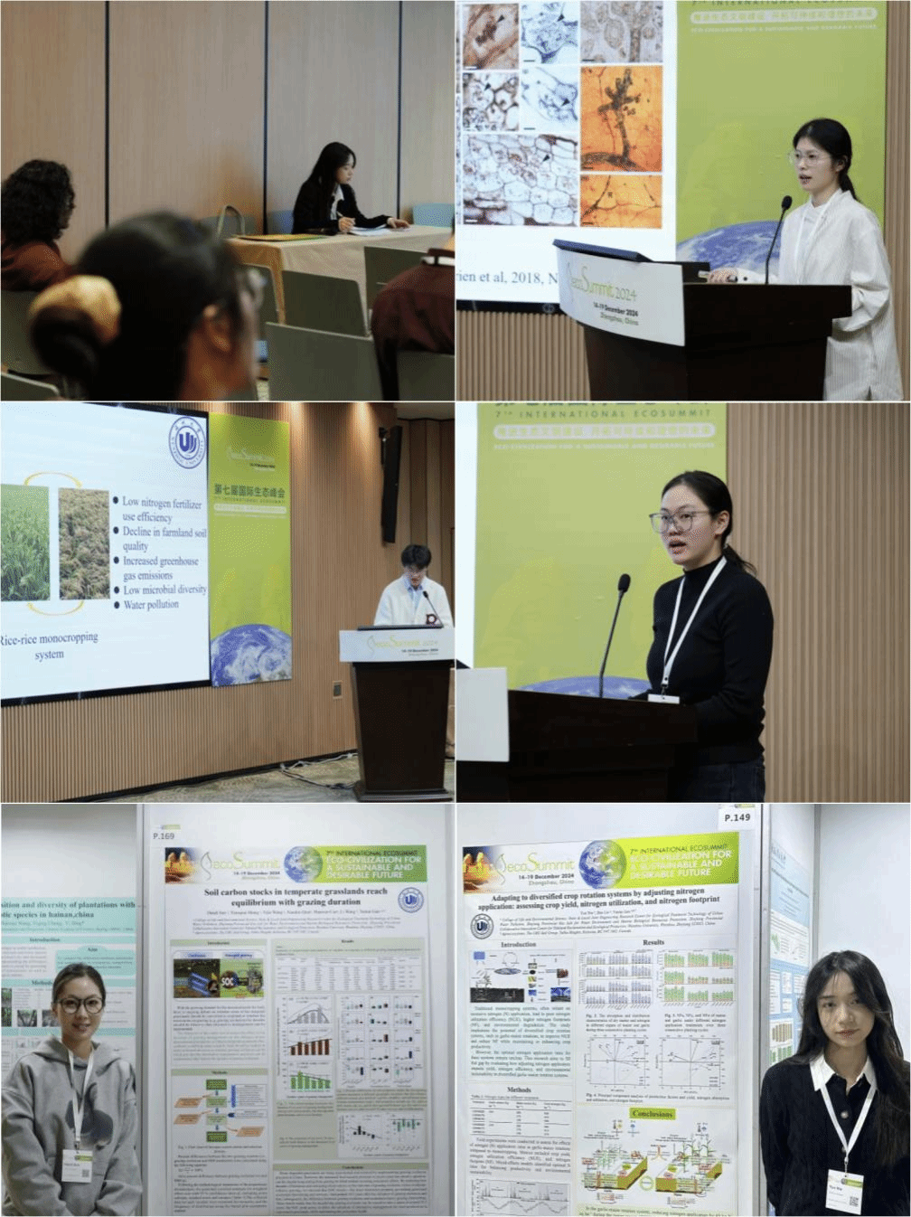 我院甘延太院士课题组6名师生参加大会。一年级生态学硕士聂云同学主持Strategies Toward Agroecosystem Resilience分会,二年级生物学硕士尚小倩、钱学多和资源与环境硕士桂树声同学分别进行了分会场英语口头报告,硕士孙丹迪和聂云同学进行了学术海报展示,国内外与会专家学者50余人参与了该分会场的学术交流。