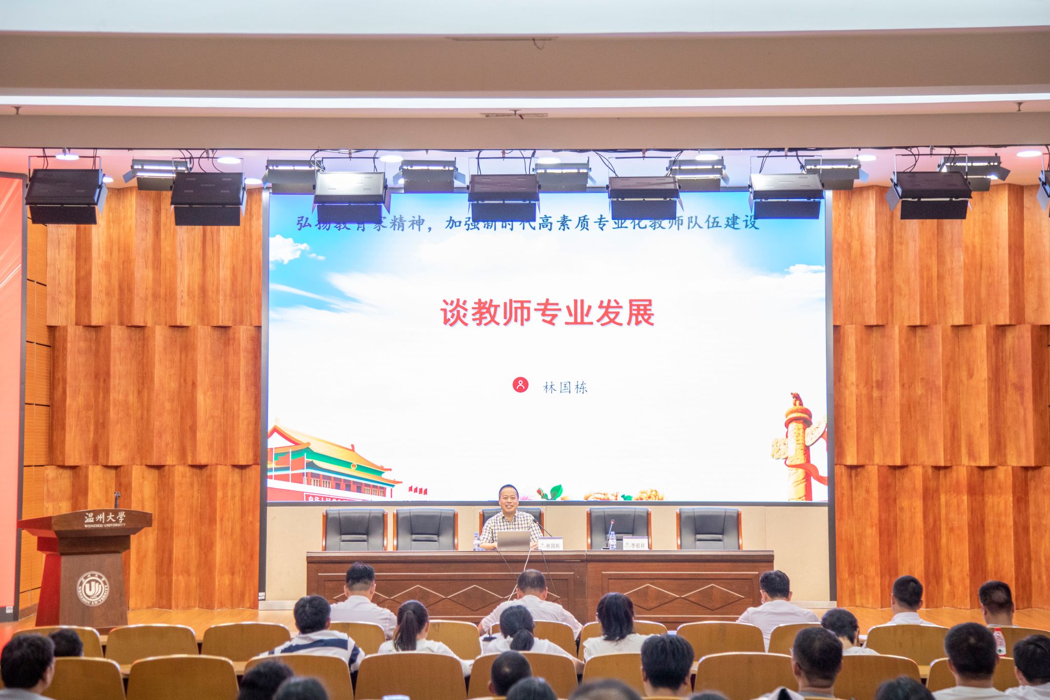 会上,集体学习了《中共中央 国务院关于弘扬教育家精神加强新时代高素质专业化教师队伍建设的意见》文件精神,由学院党委委员林国栋教授领学。林老师是一名资深的教学法教师,对教育家精神有着深刻的认识和独到的见解。他从一名教师的成长规律和教育家精神的培养路径两个维度进行详细解读,并结合自己的教学实践分享了自己多年从教的感悟,引发大家强烈共鸣。