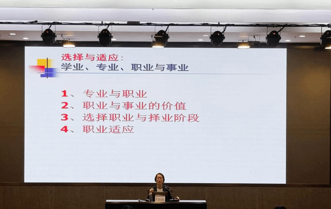 随后,徐速教授谈到了选择与适应。她以“选择意味着什么”为切入点,用罗杰斯的话说明选择意味着自由,并阐述了职业适应与自我探索的价值。徐速教授还谈到了恋爱与婚姻,指出大学时期恋爱的轻松和工作后恋爱的焦虑,形成鲜明对比。在与同学们轻松的互动中,徐速教授以亲密关系为话题结束了今天的讲座。