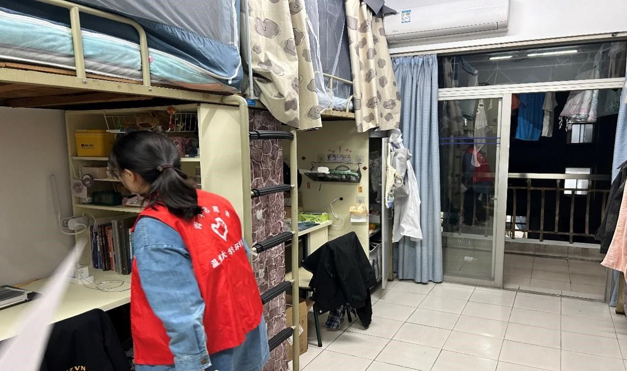 志愿者们还对寝室的卫生情况进行了检查,提醒同学们要保持寝室整洁,定期通风,防止疾病传播,鼓励大家共同营造一个和谐、温馨的寝室氛围。寝室卫生直接关系到学生的生命健康,寝室卫生检查可保障健康、提升舒适度、培养好习惯,还能维护学校形象。