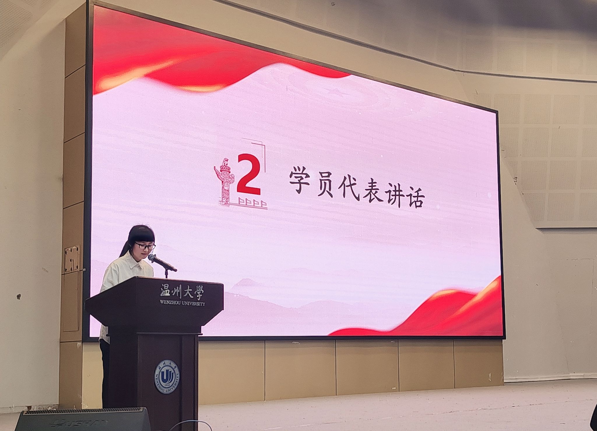 生环学院本科生第四党支部吕晓彤同志作为培训班优秀学员代表发言。吕晓彤同志表示,参与此次培训班是预备党员们淬炼思想、强化党性修养的关键契机,预备党员应当积极将培训内容内化于心,外化于行,以昂扬的斗志和扎实的作风积极投身到社会实践中去。
