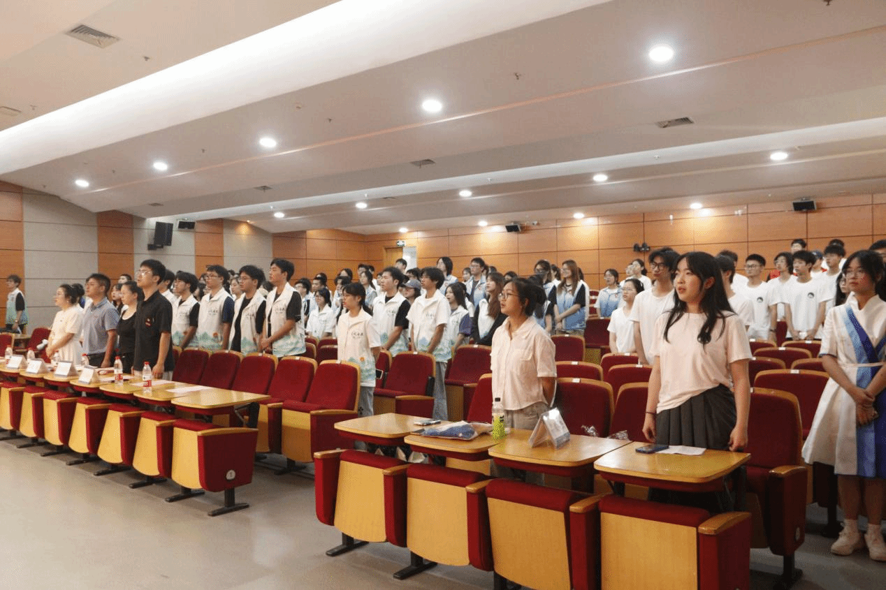 全体起立,奏唱团歌。伴随激昂旋律的奏响,实践队成员斗志昂扬,齐声唱响了团歌,展现了青春与梦想的力量。