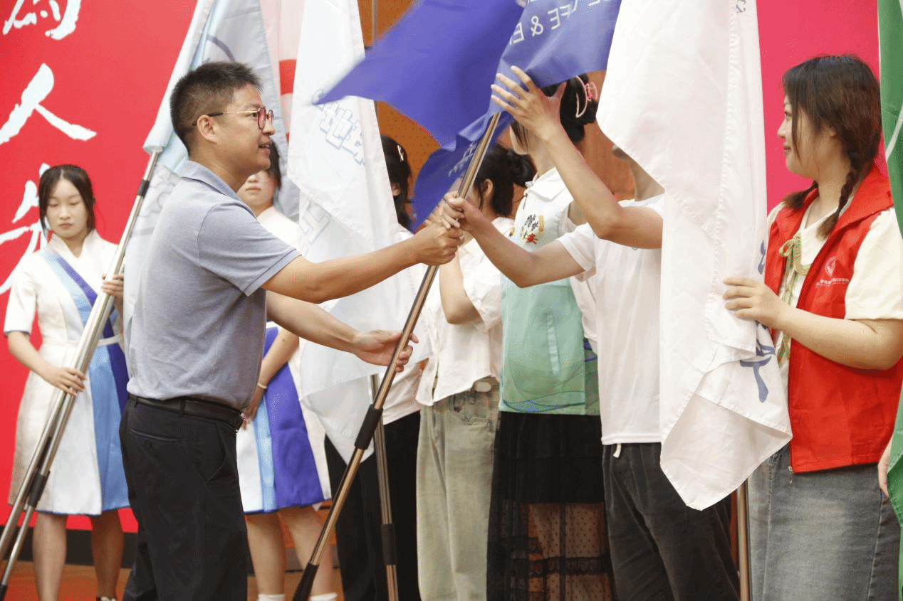 授旗仪式。我院党委副书记周领老师为实践队授旗。院团委指导老师周啸鸣老师带领挥旗。授旗仪式象征着责任和使命,挥旗代表着昂扬的姿态和胜利的曙光,激励着实践队成员始终保持奋发有为的精神风貌,顺利完成各项任务。