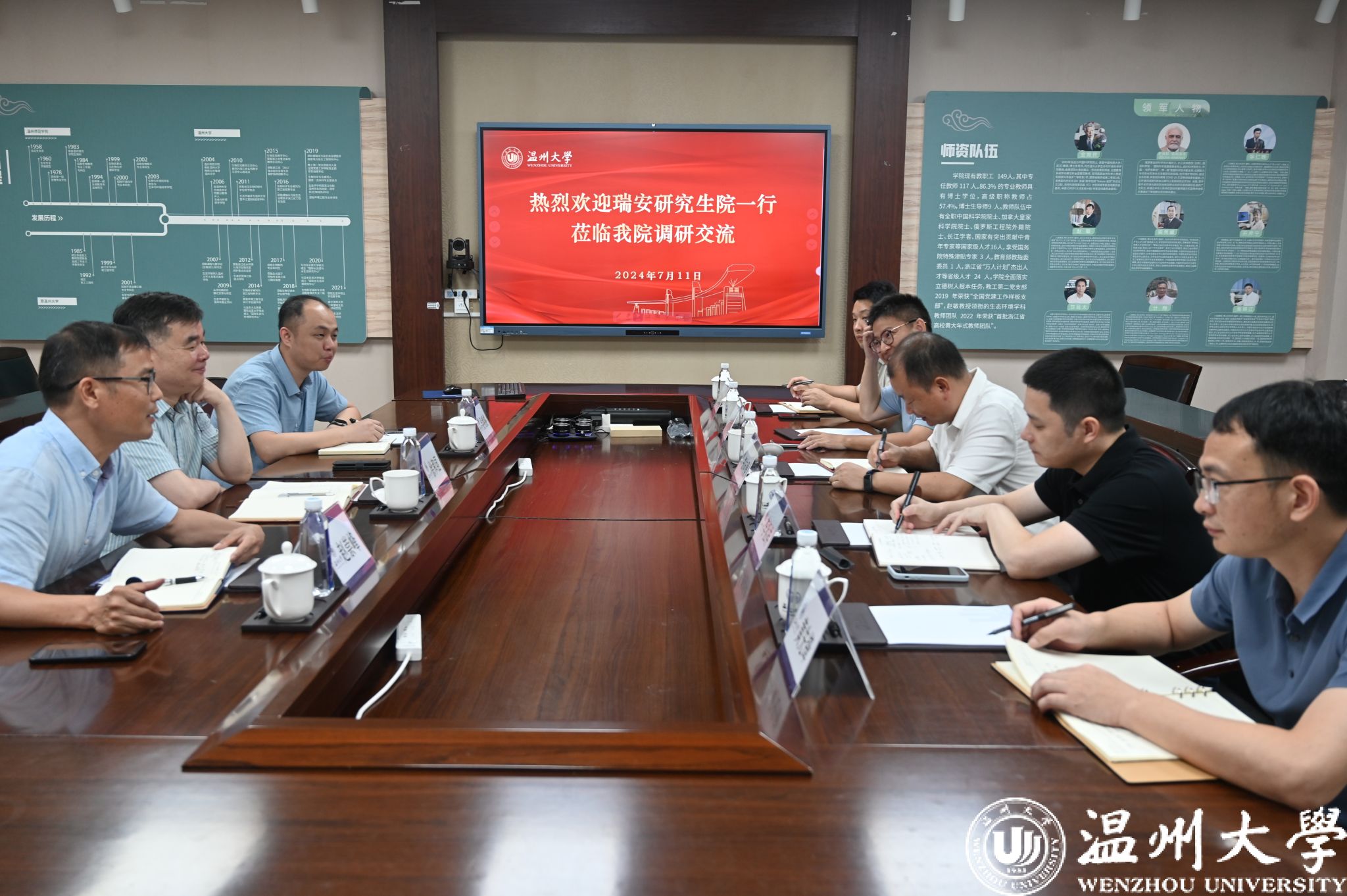 7月11日上午,瑞安研究生院徐和昆、吴明格、赵崇峰等领导一行,来我院调研交流工作。我院领导班子出席了调研座谈会。