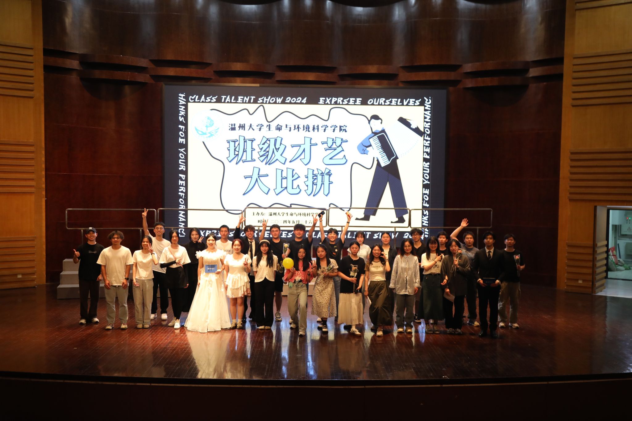 本次活动以南楠同学的独唱《爱要坦荡荡》正式拉开帷幕。紧接着的是22生物制药带来的歌舞表演,歌声带来欢乐的气息,优雅的舞姿使人放松;23生科2为我们带来了合唱《一路生花》,唤起了观众们对美好愿景的向往;23生态合唱《我和我的祖国》,表达了对祖国深沉的爱;22环工的歌曲演唱《我是如此相信》引得观众们强烈共鸣;22生技倾情合唱《我们的明天》,传递了对未来的美好希望;随后23生技2班齐唱《晴天》,歌声让我们回忆起往昔美好的时光;22生科1带来合唱《昨日青空》,两只小熊的表演吸引了众人的目光;22生态表演的唱跳歌曲串烧瞬间引爆全场,观众们热情打call,加入到歌曲演唱中;来自22生科2的合唱《仰望星空》令人陶醉,随后插入的舞蹈也令观众们感到惊喜;接下来是23生科1的合唱节目《夜空中最亮的星》,愿我们前进的道路皆有明星指引;23环工合唱的《无名的人》致敬那些默默奉献的英雄;最后,23生技1合唱《我们的明天》,提醒我们无论何时唯有不断前行明天才会到来。台下掌声不断,观众们都沉浸在表演的欢乐气氛中。同时,在每轮次的休息时间还分别进行了歌曲飞花令和抽奖活动,活跃了现场的气氛并充分调动了观众的积极性,现场洋溢着欢乐和热情。