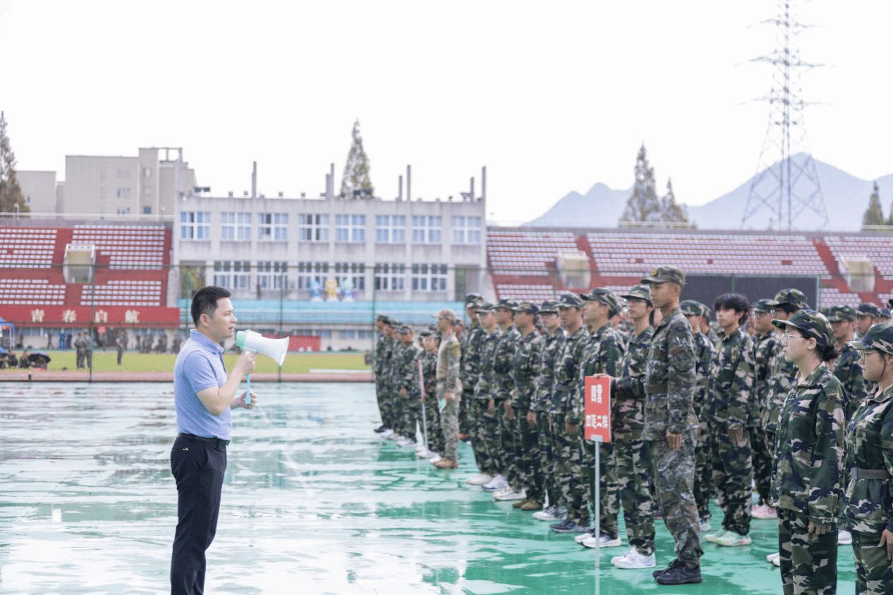 慰问活动正式开始,李祖祥书记发表了简短而诚恳真挚的讲话。书记肯定了同学们付出的努力,同时也教导同学们军训不仅仅是体能与意志的双重考验,更是一次难得的成长机会。书记的字字句句亲切而有力,无处不透着对同学们的满满期望,给予了新生们心理上的极大慰藉。