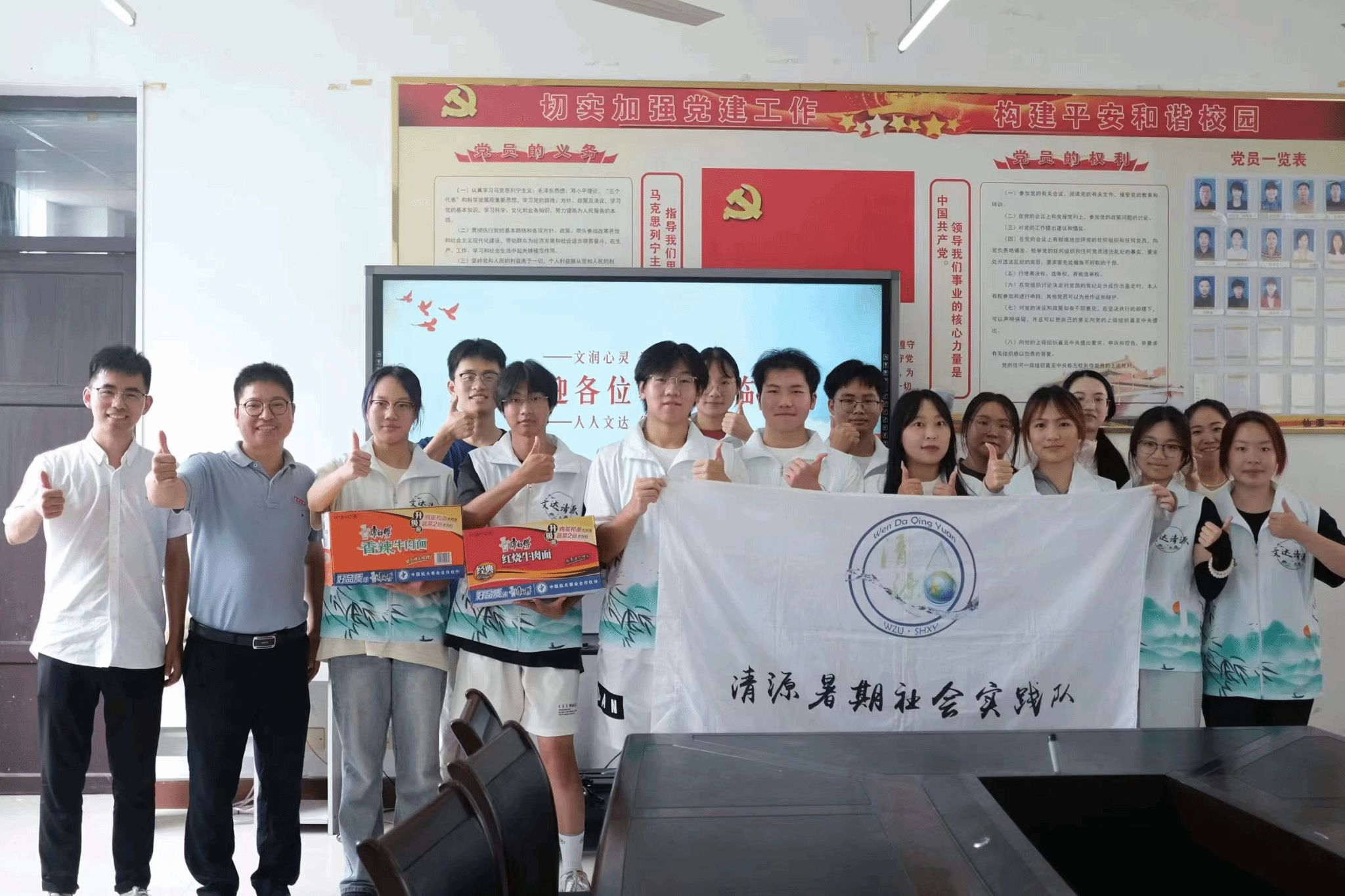 在这次慰问仪式上,学院为各实践队发放了丰富的物资,包括矿泉水、方便面、八宝粥等,以实际行动支持队员们的工作与生活。