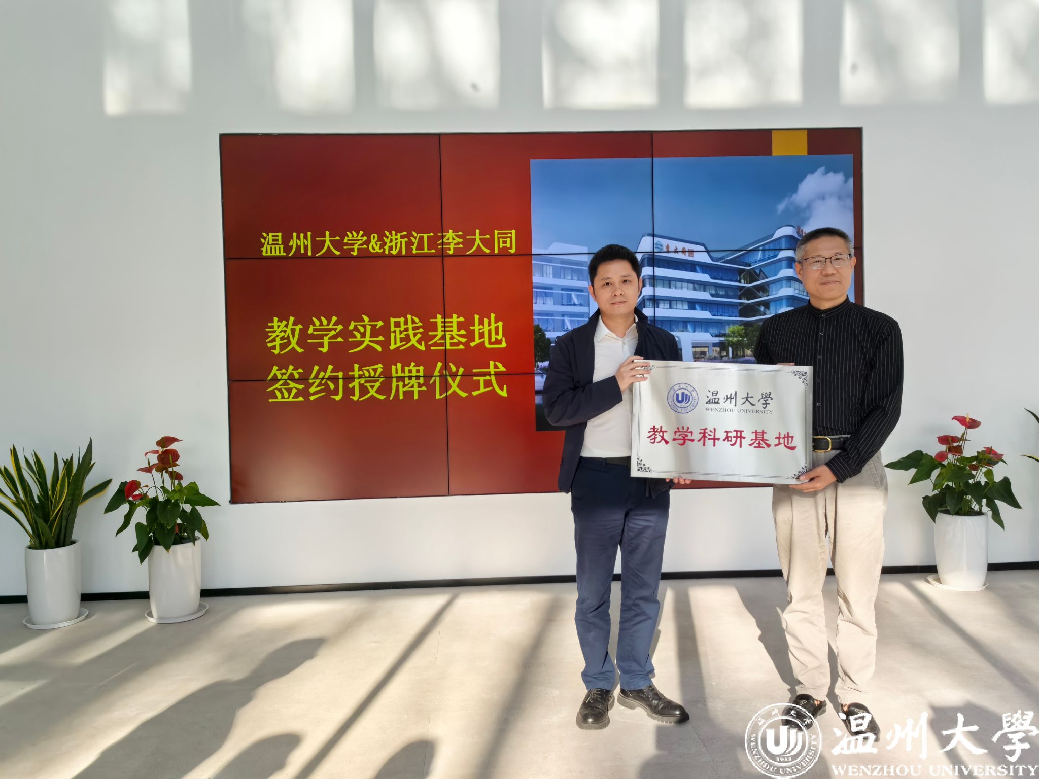 11月8日,学院党委书记李祖祥、副院长黄先锋和生物系主任张永华与瑞安研究生学院党总支副书记赵崇峰,前往瑞安回访了校友企业浙江李大同食品有限公司,并举行了教学科研实践基地签约授牌仪式;同时,回访了校友企业浙江环森环境科技有限公司,进一步谋划了产教研更高层次的合作。