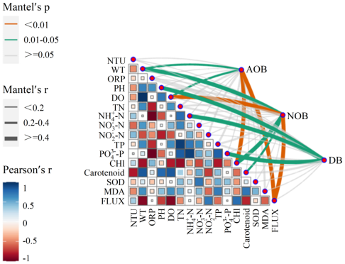 图3 环境变量与脱氮功能菌丰度之间的相关性热图