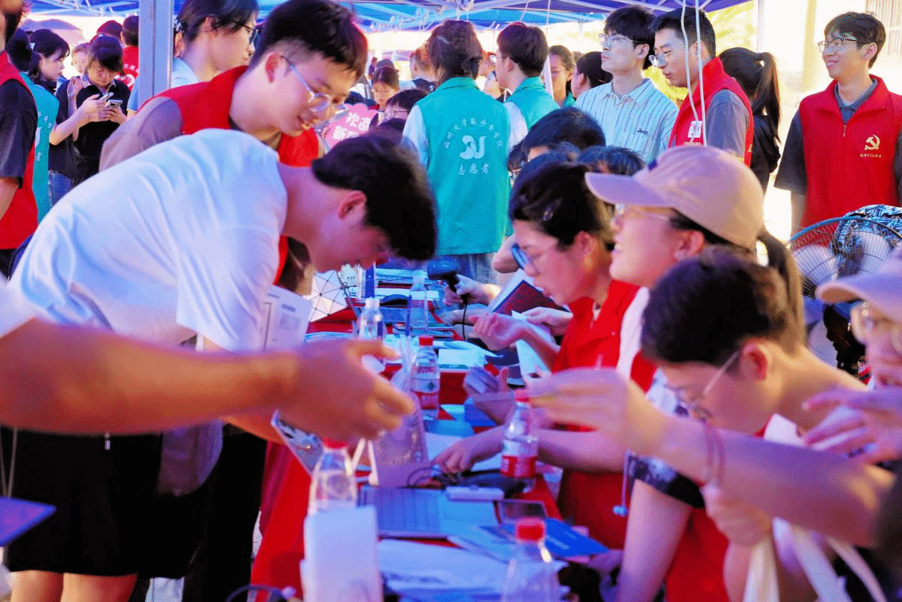 党员服务队和党服成员早早地汇聚于步青学区的迎新站点,贴好班级指示牌、摆好宣传板、搭起宣传台,布置了一目了然的迎新现场。他们将学生卡、手绘校园地图、新生始业教育安排表等物品统一袋装,提高了新生报到领物的效率。随着新生陆续抵达,党员服务队与党服成员的热情也随之升温,他们以温暖的笑容迎接每一位新生,用实际行动诠释着热忱服务的精神。在迎新活动中,他们不仅耐心解答新生的各种疑问,还主动指引方向,帮助搬运沉重的行李,为新生提供了周到的服务。