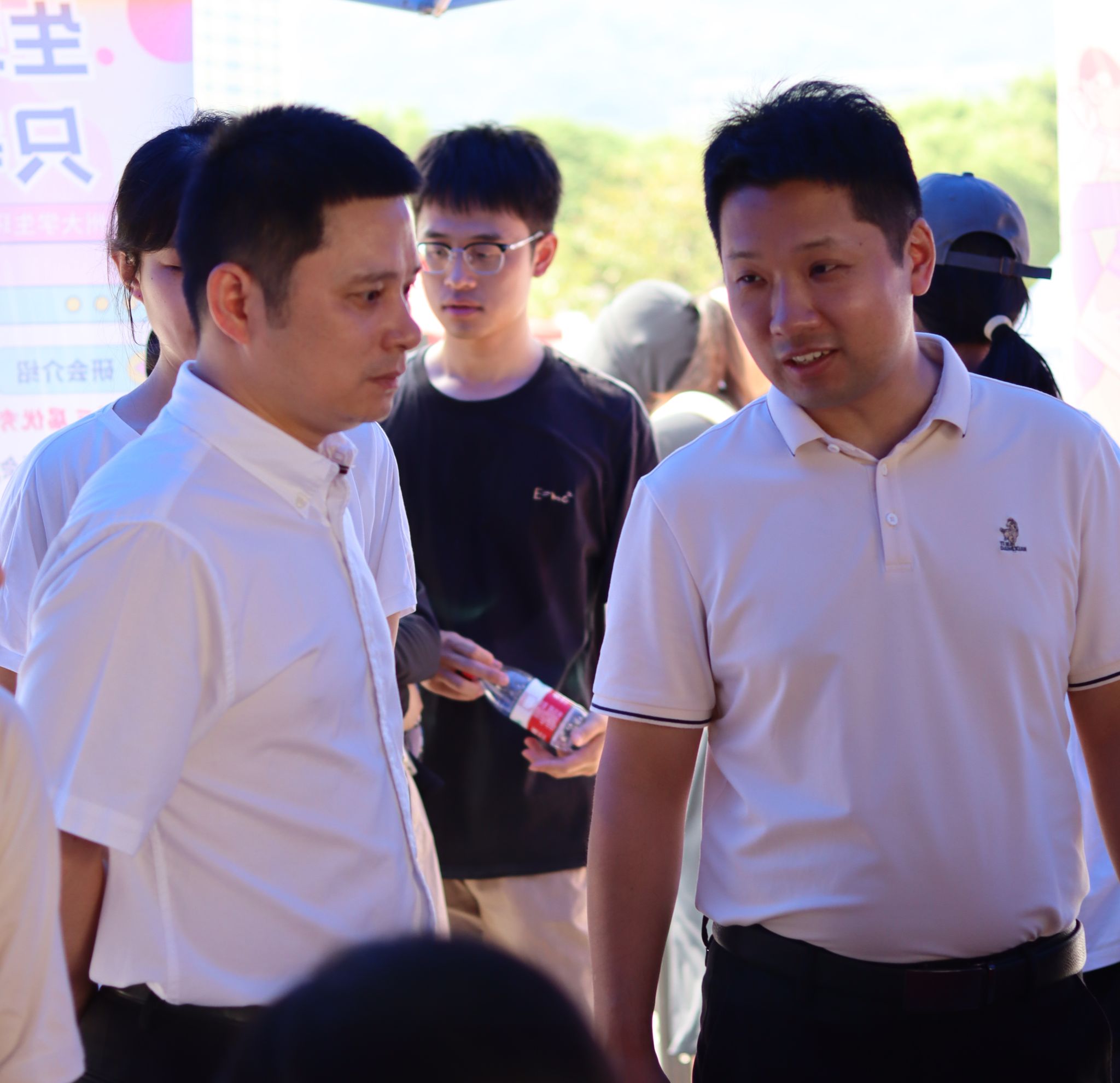 迎新现场,校党委书记钱强、校长赵敏、校党委副书记庄兴忠一行也来到我院与新同学们亲切交流,仔细询问新生们的入学报到情况,迎来新生及家长的热情合影留念。
