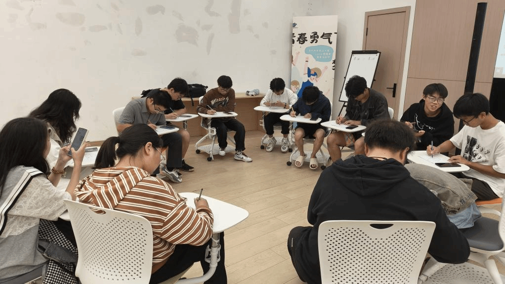 最后的书写环节是活动的升华部分,同学们安静地记录下对大学生活的感悟、对自己的期许与目标,为未来的成长定下清晰的方向。