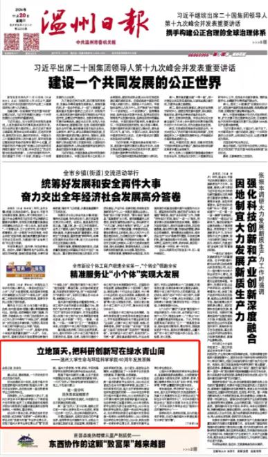 根植于温州创新的土壤,立足于美丽中国建设主战场,全面贯彻党的教育方针,一代代“生环人”把科研创新写在祖国的大地上,不负绿水青山!
