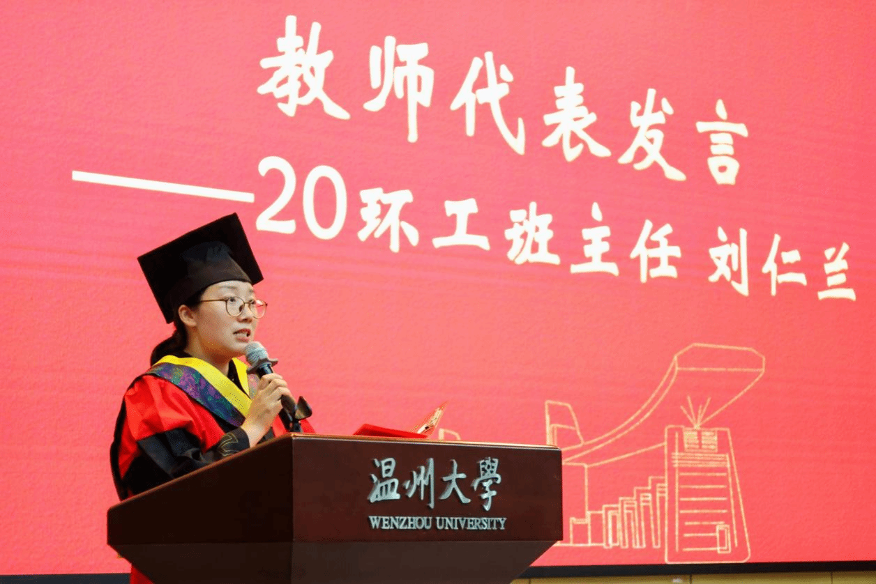 教师代表发言。20环工班主任刘仁兰老师代表全体教师向2024届全体毕业生表达美好祝愿。她向全体毕业生提出“继续学习”的建议,她指出学习是人生的永恒主题,唯有不断学习,才能适应不断变化的世界。刘老师也如慈母般叮嘱学子们,身体是革命的本钱,并表示永利集团永远是学子们温暖的港湾。