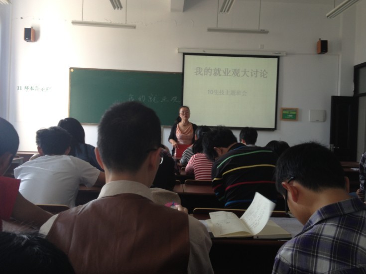 2012年10月18日下午,为了帮助同学们对自己的未来做出明确的规划,10生技班在南11A-405教室召开了“我的就业观大讨论”主题班会。