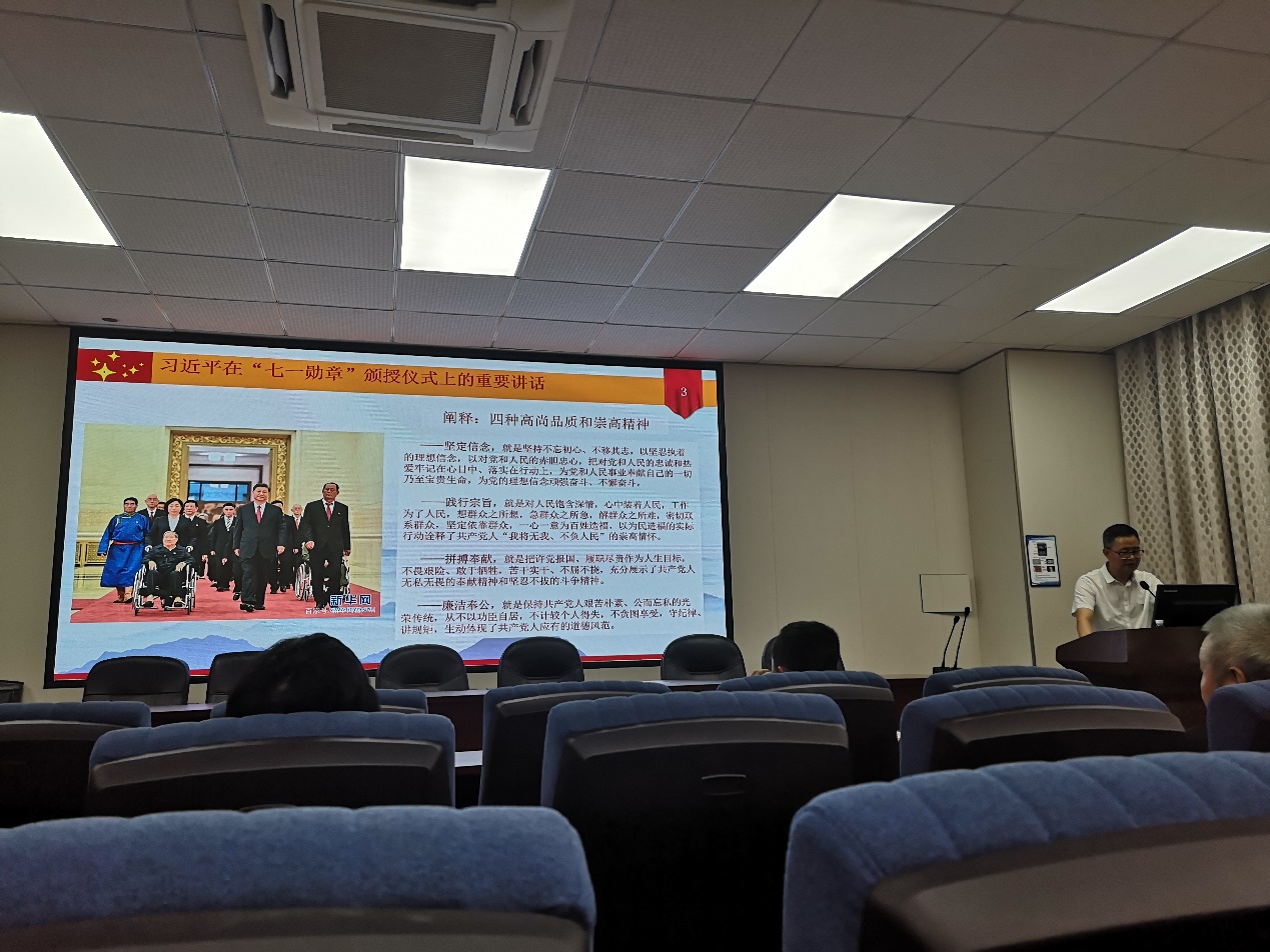最后,党委书记陈孟森向大家传达了习近平总书记在“七一勋章”颁授仪式上的重要讲话精神,并要求全体党员同志领悟讲话精神,切实不断地把为崇高理想奋斗的实践向前推进。