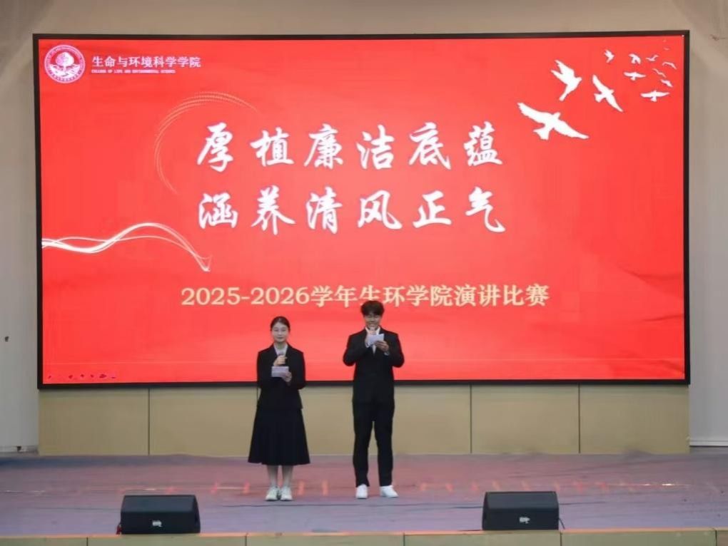为深入学习贯彻党的二十届四中全会精神,营造风清气正的校园廉洁文化氛围,生环学院于11月9日在苏步青学院报告厅举行“厚植廉洁底蕴,涵养清风正气”主题演讲比赛。本次比赛由生环学院党员服务中心承办,郭思彤、王瀚明同学主持,专职组织员刘纪峰老师、党建辅导员黄益玮老师、学工办辅导员杨雨晴及张亚萍老师出席并担任评委。