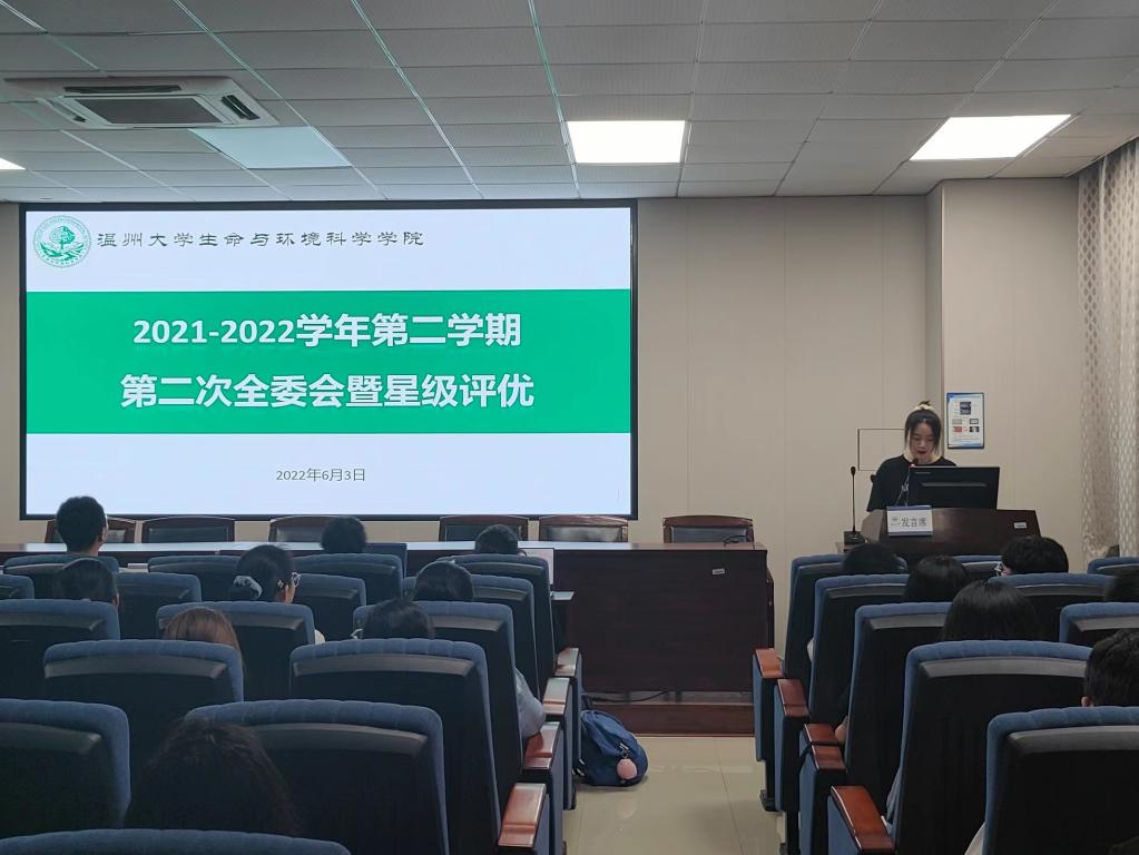 为了及时总结各部门经验并表彰优秀团学干部在这一学期的劳动成果,2022年6月3日晚,我院于10B202晚18:30准时召开2021-2022学年第二学期我院团委·学生会第二次全委会暨星级评优。出席本次会议的有我院团学指导老师陆海鹏老师、团委副书记邹婷、组织委员蔡梦瑶、执行主席竺衍萱和方静,我院团学全体干事参与本次会议。此次会议由执行主席蔡梦瑶主持。