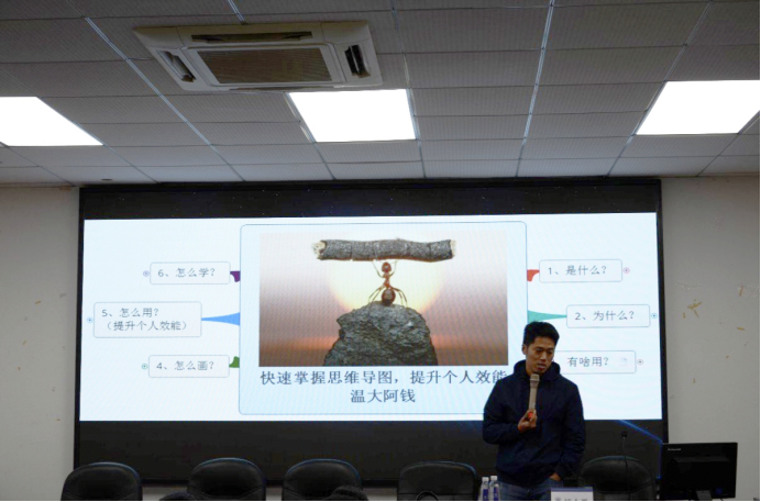 会议的最后,钱合激老师提醒各位团干没有反馈就没有学习,没有分享就没有反馈,先付出才有回报。并且分享了自己的座右铭“不完美的行动胜过完美的等待”鼓励各团干积极行动将思维导图运用到学习生活中。他希望各团干能够将本次培训的内容分享给更多的同学,让思维导图帮助到更多学生。