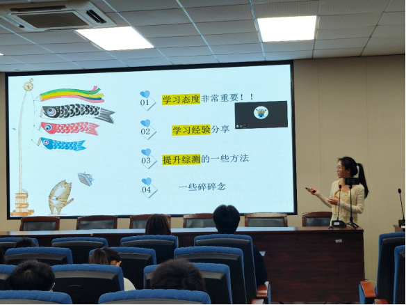其次是汪妹学姐。学姐以态度就是一切的观点展开分享,提到在学习上应先了解每门课的学分、考核占比,积极参与实验竞赛、提高自己的综测分,在课余生活上要积极参加活动,合理规划时间、丰富大学生活。