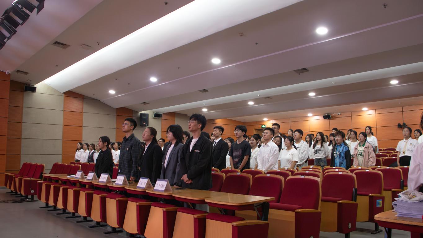 最后,周啸鸣老师首先代表学院学工团队对在场新生加入学生干部队伍表示欢迎,接着希望大家能以饱满的热情参与其中,虚心学习、用于思考,不断地提升自己的综合素质能力。周老师对大家提出了两点要求:讲奉献,学生干部承担着服务同学、引领同学、助力学校学院发展的重要责任,一味在意个人得失不仅容易对集体造成伤害,还不利于个人的成长;重学习,学生的首要任务就是学习,若作为学生干部自身学习成绩不够出色,则无法在学生群体中起到榜样引领作用。最后周老师表示,学院为大家的成长提供了充足的养料,足够让大家成长为一名能独当一面的优秀学生干部,希望大家不断成长,度过一段丰富且充实的大学生活。