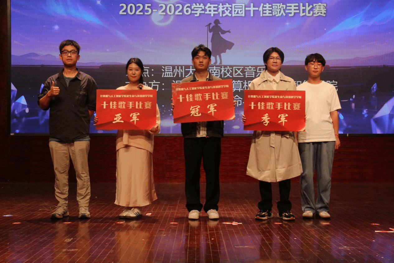 经过激烈角逐与专业评审,邵炜淇、张雯婷、陈久洲、王博、马君曦、赵奔昊、许流畅、陈梦娇、吴筱馨、孙潇奕、蔡嘉晟同学凭借出色的舞台表现,荣获本届“校园十佳歌手”称号。