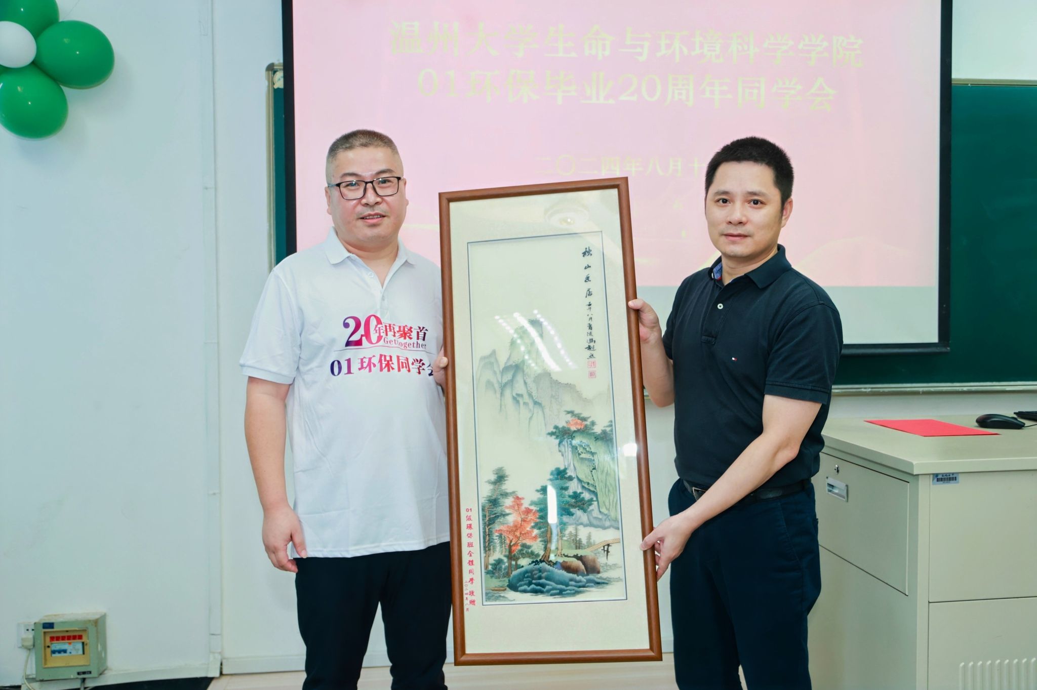 随后,01级环保班长向学院赠送班级纪念品。