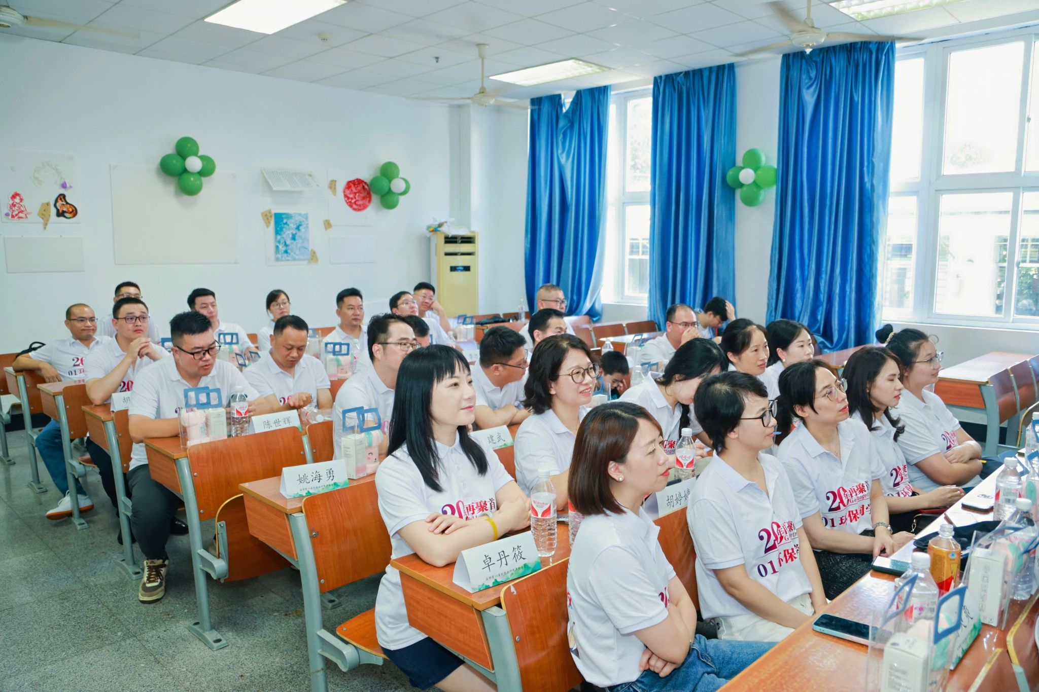 二十年再聚首,重温青春,共话未来。8月10日下午,01级环保校友返校在我校学院路校区举行毕业20周年同学会,学院党委书记李祖祥、班主任南旭阳及部分教师代表参加,姜海燕、唐华等老师受邀参加。