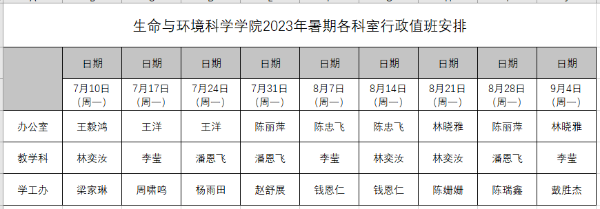 yl6776永利集团2023年暑期各科室行政值班安排.xlsx