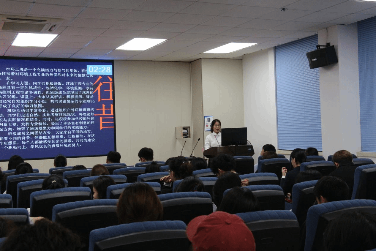 展示环节结束后,赵舒展老师代表全体老师总结发言,肯定了候选集体与个人的表现,寄语学生以榜样为镜、以行动践行学风建设。对此她提出了三点期望,希望所有的班级和个人能扛起优良学风班和学习标兵的旗帜,并分享经验。同时,强调了以优秀团体和优秀个人为榜样,真诚查找差距,并将感悟转化为行动,实现成长。最后,鼓励同学们持之以恒,共同努力,营造良好的学风,并期待大家铭记“求学问是,敢为人先”的校训精神,将学风延续下去。