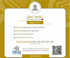 近日,爱思唯尔数据库(Elsevier Data Repository)与美国斯坦福大学联合发布了2025年度全球前2%顶尖科学家榜单。我校yl6776永利集团甘延太院士凭借其在绿色低碳农业生态科学领域的卓越贡献和持久影响力再度斩获殊荣―连续第六次入选 “终身科学影响力榜单”(Career-long Impact), 并连续第八次入选“2025年度科学影响力榜单”(Single-year Impact)!