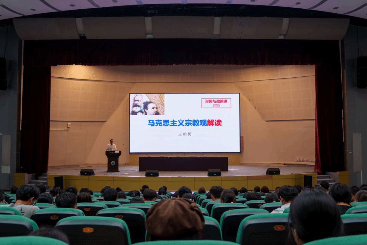 王柏民教授以“马克思主义宗教观解读”开启首讲。他从世界宗教分布现状切入,深入剖析了当代宗教四个发展趋势及我国宗教工作的独特情境,帮助同学们构建起对世界宗教形势宏观认知框架。通过对美国记者对华宗教研究及大学生对于党的宗教政策认知欠缺的解析,让同学们直观感受到新时代中国的宗教工作面临着巨大挑战。
