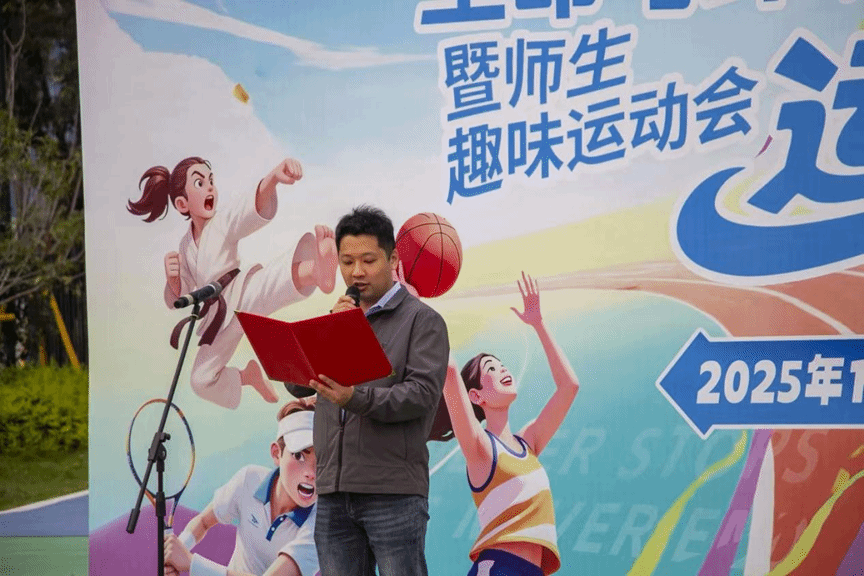 上午 9 时,运动会开幕式顺利举行。本次开幕式由周啸鸣老师主持。首先,陈斌斌副院长为大会致辞;随后,裁判员代表与运动员代表依次上台宣誓。最后,周领副书记宣布运动会正式开始。各班级随即以饱满的青春神采在赛场集结,充分展现了团结协作、奋勇争先的精神风貌。