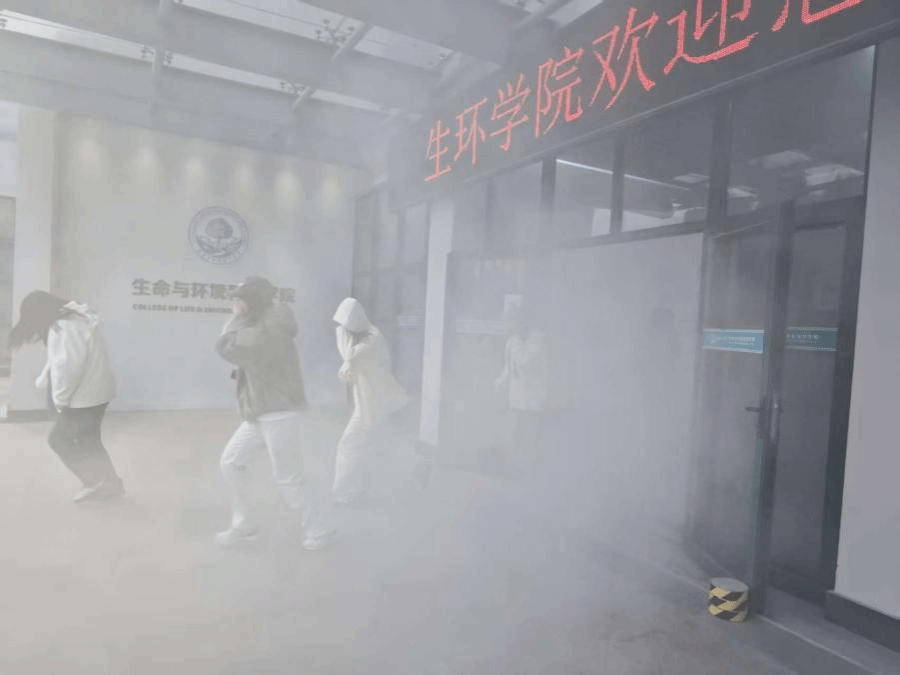 演练开始前,学院就各小组逃生位置及疏散路线进行了全面部署。引导员在场地内施放烟雾弹模拟真实的火灾场景,随着呼喊“着火了!快撤离!”,全体师生在引导员的带领下快速有序的按照规定路线低姿撤离,相关老师向保卫处消防值班室报告险情。在疏散演习的过程中,师生有序撤离,全程秩序稳定,所有师生安全抵达指定集结区域。