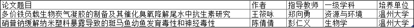 此次评选严格依据《浙江省研究生优秀学位论文和实践成果评选办法(试行)》(浙研教字〔2025〕12号)开展,经学院推荐、学校评审、省级专家通讯评审和会议评审等多轮严格遴选,我院陈倩倩同学的《硝普钠缓解纳米塑料暴露导致的斑马鱼幼鱼发育毒性和神经毒性》(生物学专业,指导老师:彭仁义)、王筱咏同学的《多价铁负载生物炭气凝胶的制备及其催化臭氧降解尾水中抗生素研究》(资源与环境专业,指导老师:郑向勇)脱颖而出,斩获省级优秀硕士学位论文荣誉。两篇论文聚焦生物和环境领域前沿与实际应用问题,研究成果兼具学术价值与实践意义,是学院研究生科研创新能力与学术研究水平的集中体现,更是对学院研究生分类培养体系建设成效的高度认可。