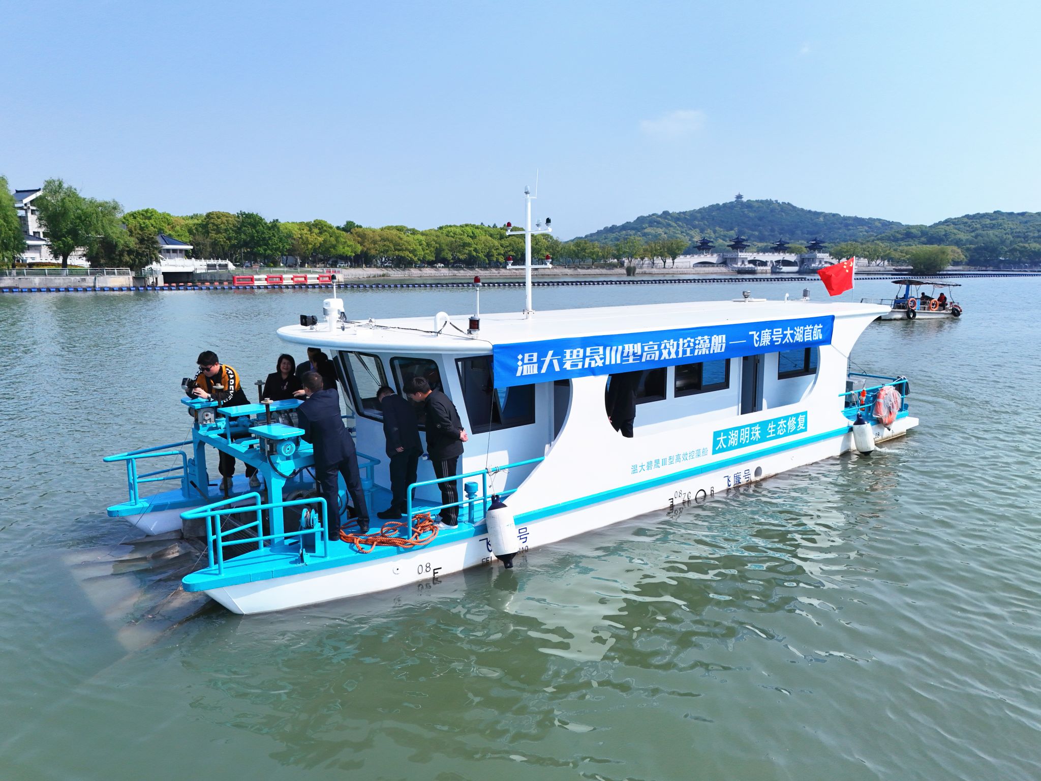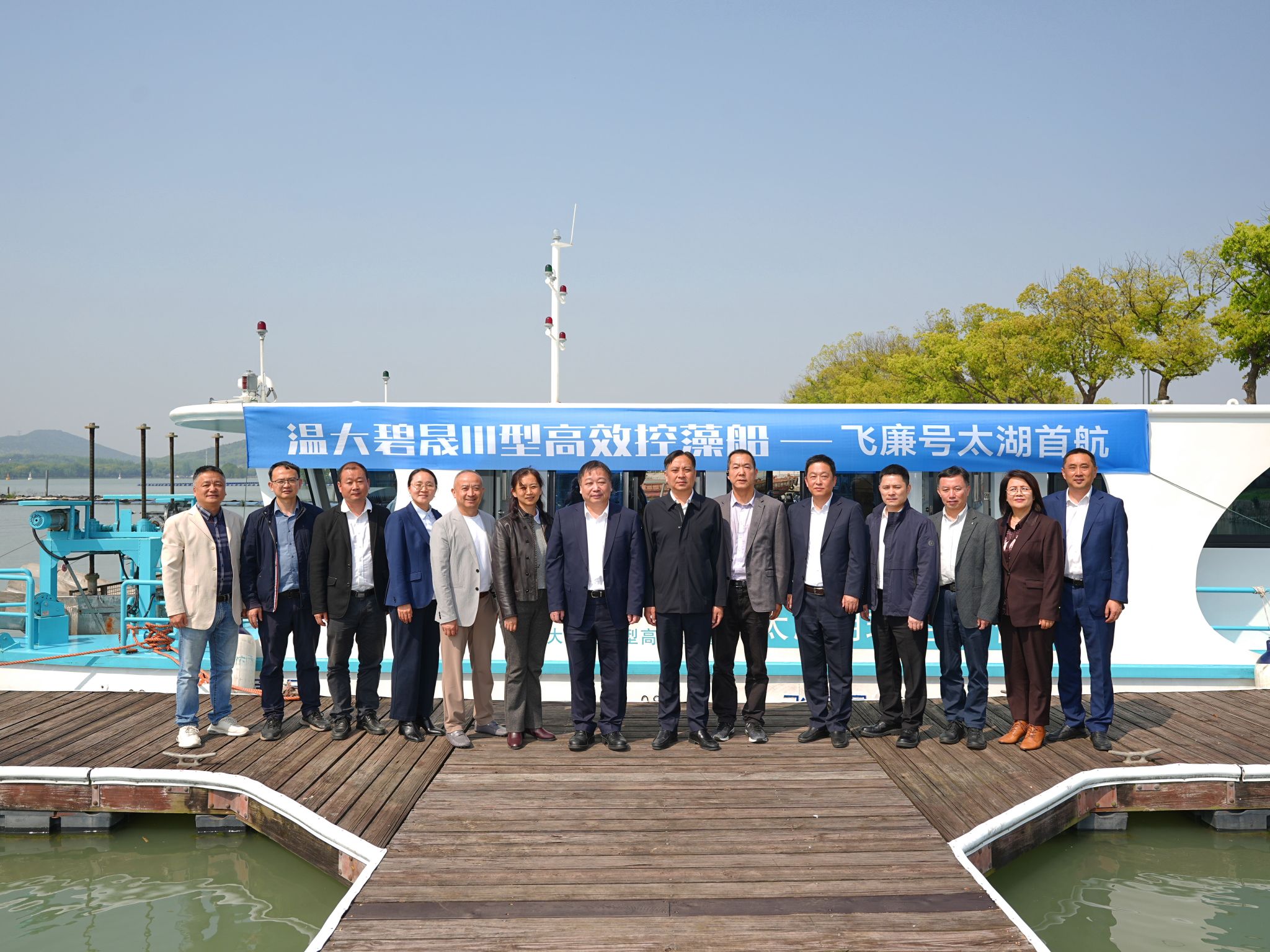 4月24日,由永利集团校长赵敏教授领衔科研团队自主研发的蓝藻水华物理喷射分散技术迭代成果温大碧晟Ⅲ型高效控藻船“飞廉号”,在太湖鼋头渚举行交付首航暨产品发布会,正式投入太湖流域蓝藻水华常态化应急防控与综合治理工作。仪式由永利集团与无锡市文旅集团联合主办,永利集团赵敏校长及研发核心团队、无锡市生态环境局、水利主管部门、浙江伟达园林工程有限公司等有关单位领导、行业专家共同出席见证。