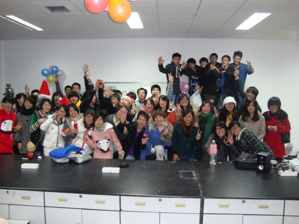 2011年12月24日,平安夜温馨而来,在这个特殊的节日里,09环本相聚一堂,10C—505的室内被气球装扮成温馨的晚会场地,门外红红的蛇果和印有“09环本”班印的号码牌专人派送者。6:30,09环本的全体成员终于迎来了圣诞晚会的正式开启。