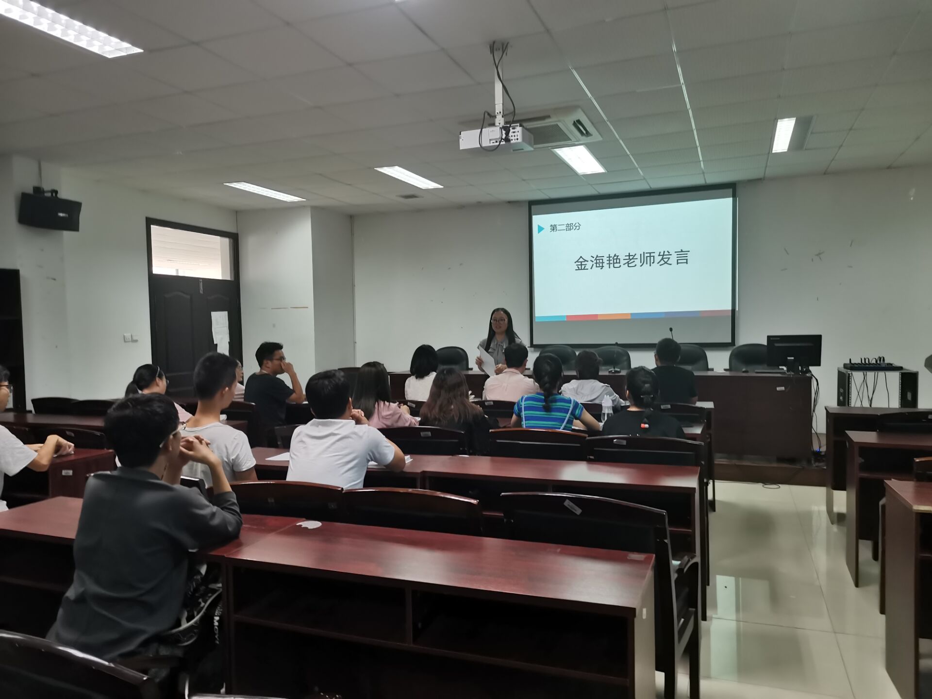 接着,由金海艳老师发表了讲话。老师首先对研会新同学的加入表示了热烈的欢迎,并且介绍了生环学院研究生的组成,研究生总人数208人,辅导员1人,因此需要在研助和研会干部的共同努力下做好学生工作。金老师强调作为研究生会的成员应该以科研为主,同时适应社会,学会与人相处和人打交道。每一位同学都要立足自身,科学地规划利用时间,在不同的岗位上锻炼自己的能力、不断成长形成长远的格局,树立“在其位,谋其职”、“赠人玫瑰,服务同学”的思想理念,不管是在实验室、专业班级还是研会中都要有团队意识。金老师最后还说有任何问题都可以去办公室咨询或者反馈,期待与同学们多沟通交流,并肩作战。